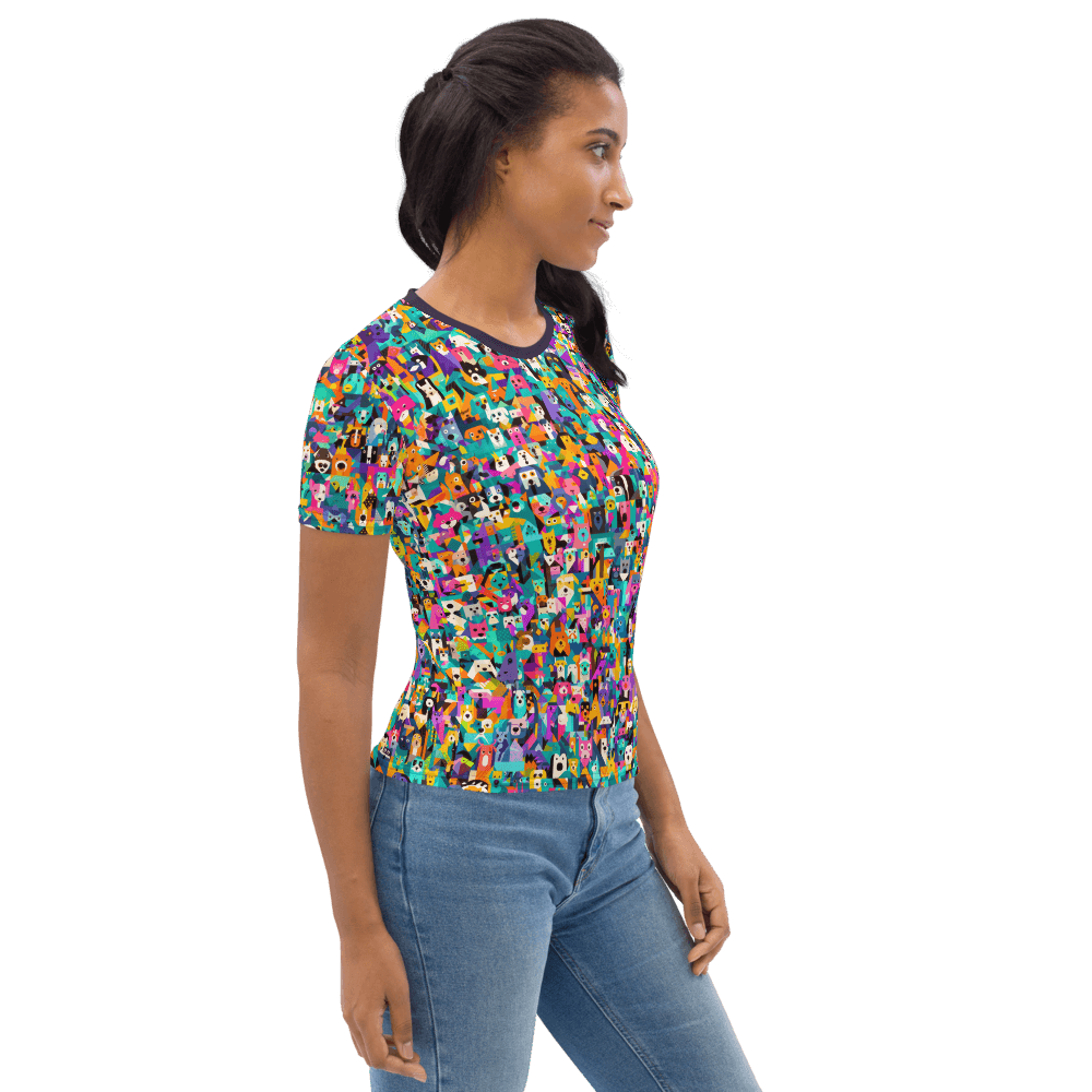 Brighten your day with All Of Your Friends! Dotted with an army of small, smiling dogs, this playful tee combines fun with a touch of geometric chic. Perfect for the dog lover with a heart for modern style, it's guaranteed to fetch compliments and spread cheer wherever you go! Woof your world with happiness!