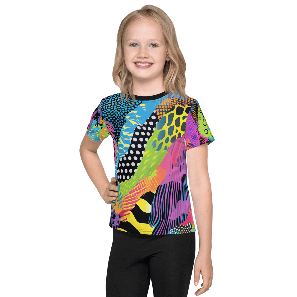 Unleash your wild side with our All The Animals t-shirt. This vibrant design showcases a menagerie of colourful animal prints, creating a bold and playful style.