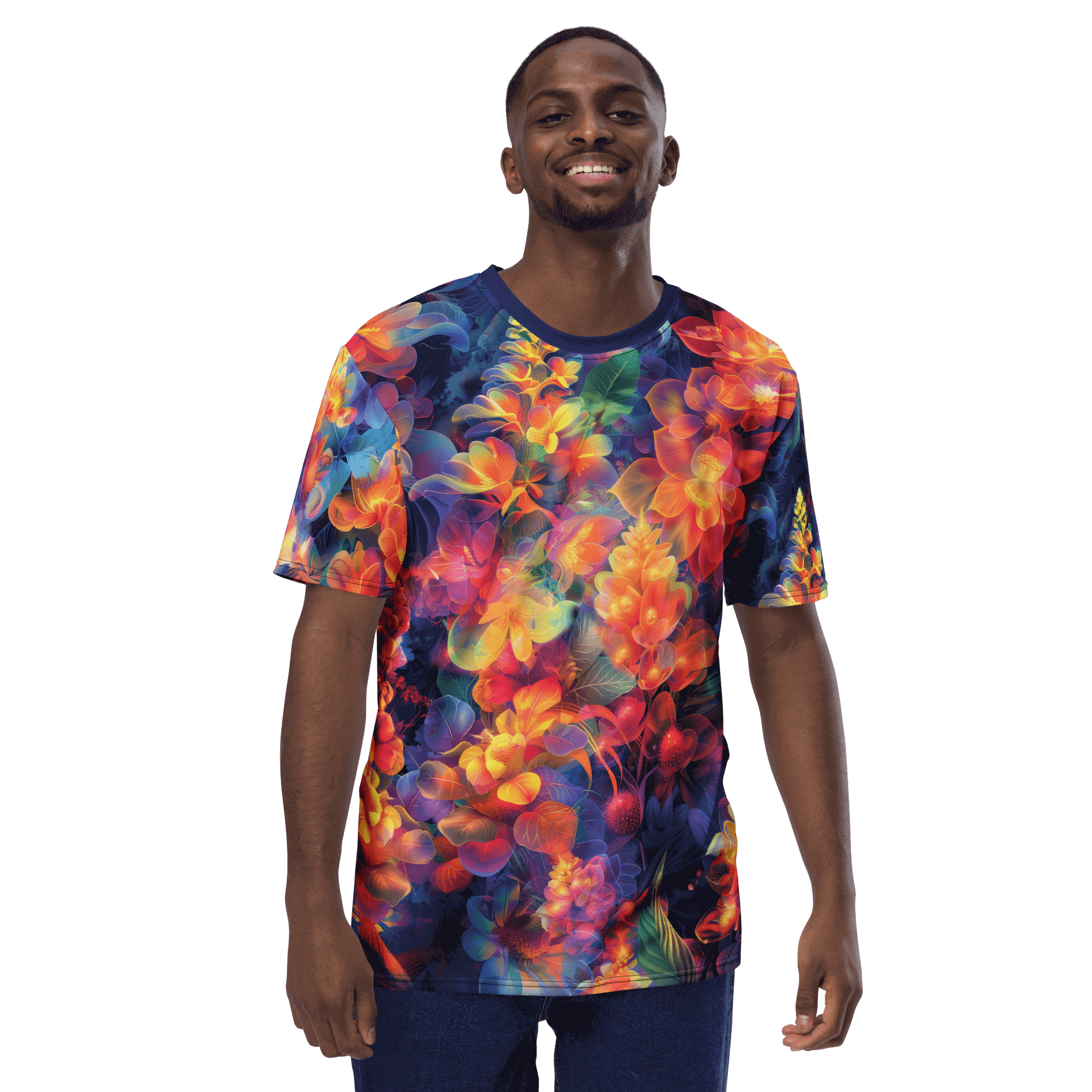 Dive into Dark Eden, where neon blooms burst against midnight shadows. This mesmerizing t-shirt design combines ethereal florals with psychedelic vibrancy, creating a wearable garden of otherworldly beauty.