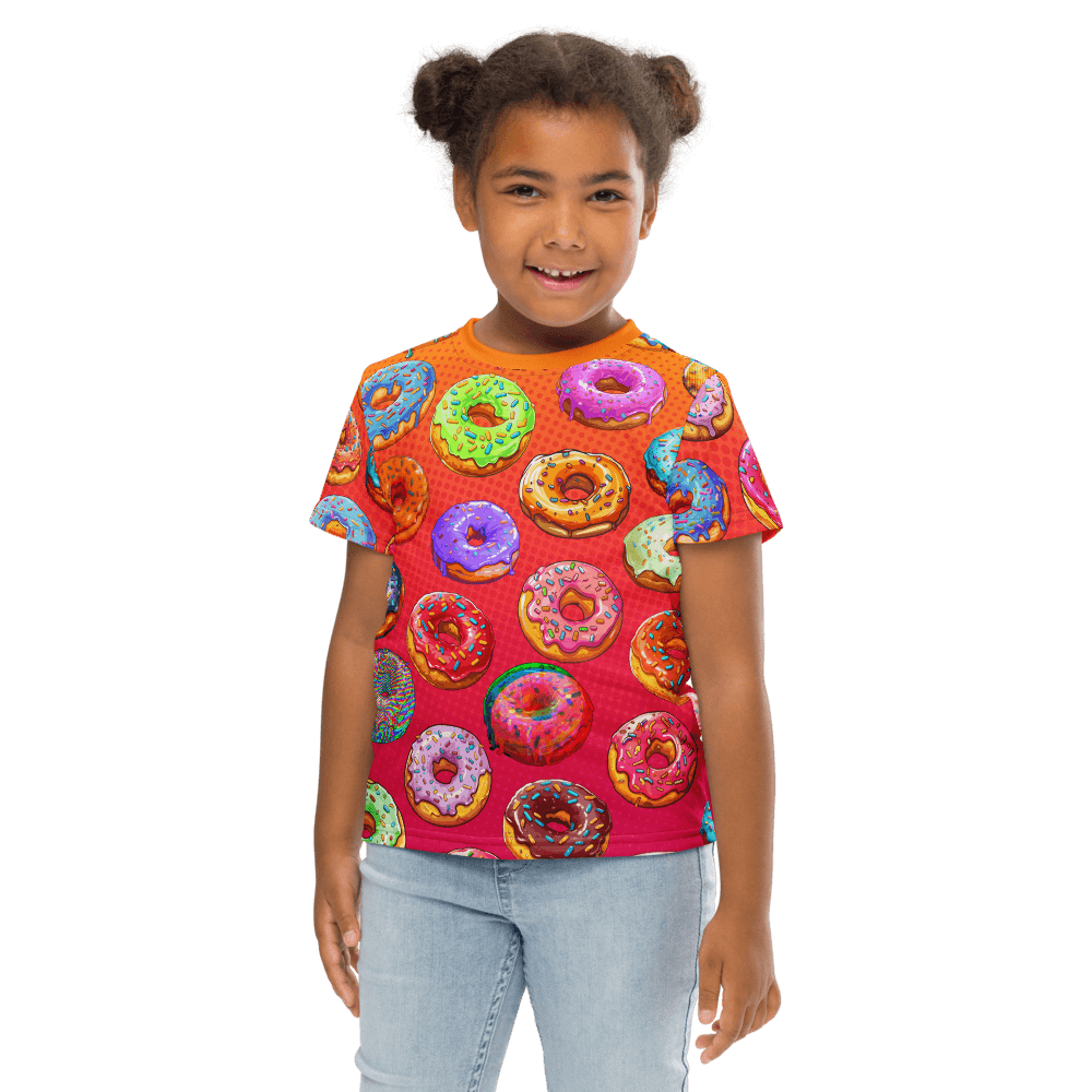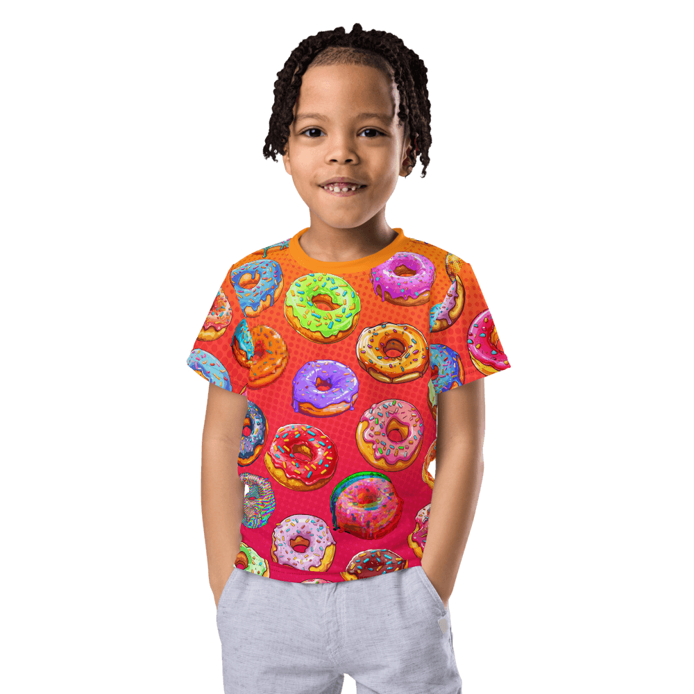 Indulge yourself with this donut t-shirt! Wrapped in bright, whimsical cartoons of your favourite sugary confections, it's a wearable piece of joy. This shirt is a recipe for smiles, sprinkling fun and fashion in equal measure. Bite into life with style; embrace your sweet side!