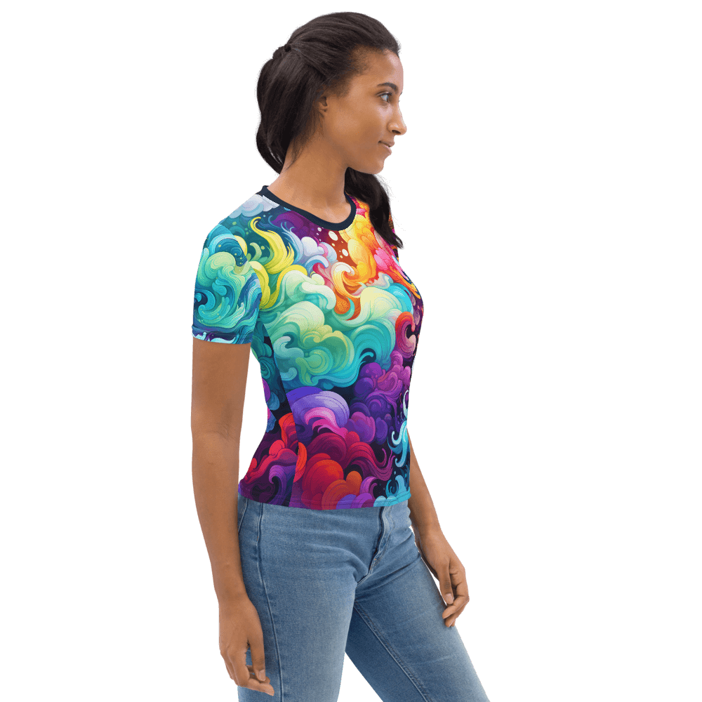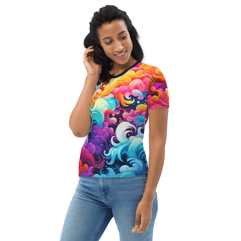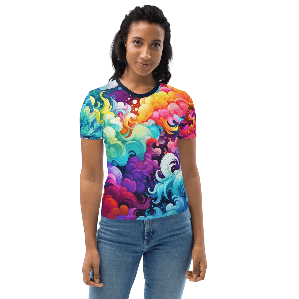 Get lost in the tempest of colour with our Mystic Clouds t-shirt! Swirling with vibrant hues that mimic the chaotic beauty of a stormy sky, this tee is a bold statement piece. It's where fashion meets the frenzy of nature's art, creating an electrifying look that's as unpredictable as it is stunning.