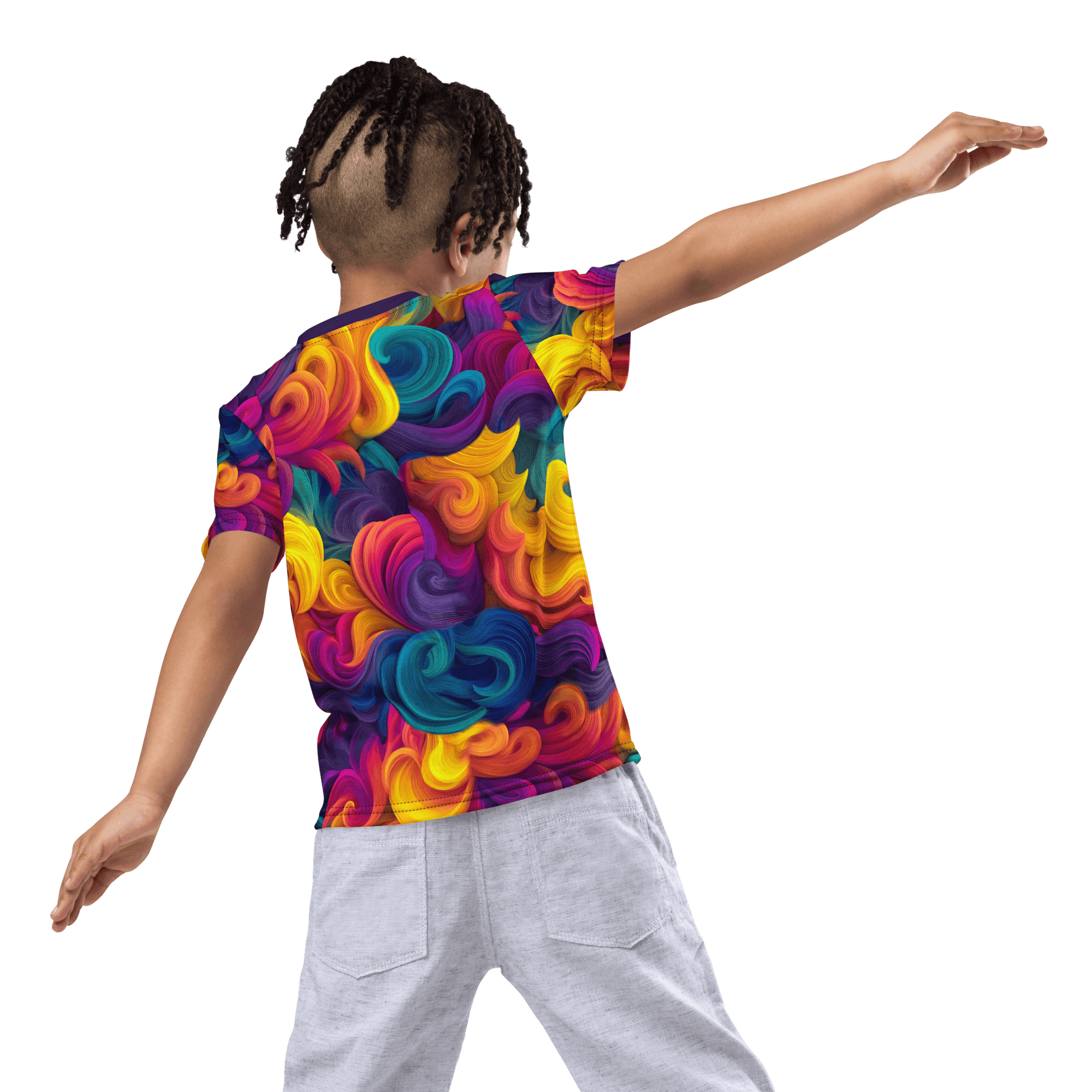 Lose yourself in our Rainbow Storm t-shirt! It's swirling with bright colours that will hypnotise and entrance you.
